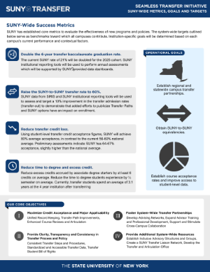 SUNY Transfer Metrics (PDF) | SUNY Transfer Steps (PDF) Coming Soon! |